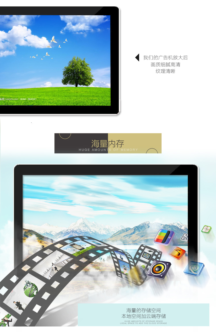 | - 觸摸方式:通過(guò)后臺(tái)發(fā)布模板鏈接網(wǎng)頁(yè)到終端設(shè)備,當(dāng)沒(méi)人觸碰顯示屏?xí)r正常播放廣告,當(dāng)有人觸摸時(shí)自動(dòng)進(jìn)入觸控鏈接模板