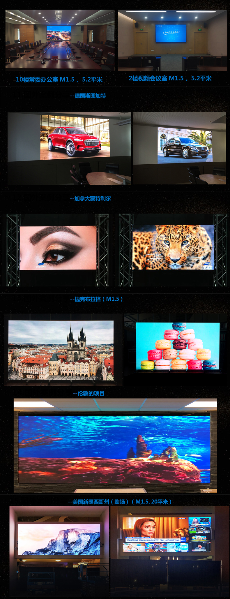 The accomplished COB ultra-fine pitch smart LED display products with less physical stitching, more extreme smooth display, greener and safer applications, stronger protection performance and environmental adaptability. Widely telemedicine, command and control room, radio and television broadcasting, educational conferences, sports media, electronic games and other indoor display applica tion | |