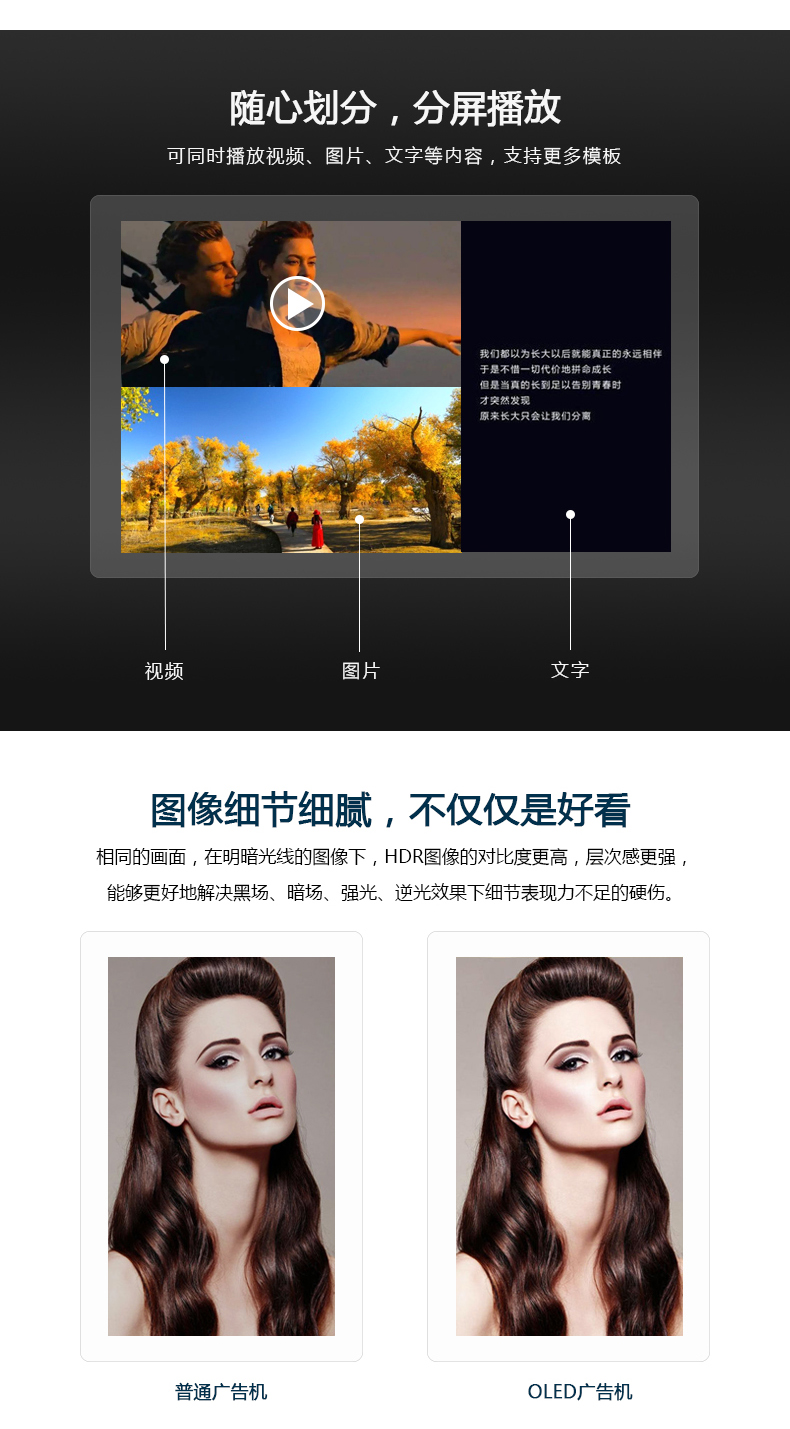 【深圳市美佳愛-液晶廣告機,觸摸一體機生產廠家電話400-997-9971】65寸超薄雙面吊掛OLED廣告機ISO9001_3C認證,主營多點紅外/電容式觸摸屏一體機,觸控查詢一體機,其他尺寸18.5寸21寸24寸27寸32寸40寸43寸46寸49寸55寸65寸75寸86寸98寸100寸多功能多媒體教學會議一體機,戶外立式/壁掛雙面廣告機,單機版/安卓網絡廣告機 豎屏樓宇電梯廣告機,長條型屏,工業級工控電腦觸摸顯示器,大尺寸觸摸屏查詢系統,商顯平板電腦電視,提供報價價格,安裝施工,售后維修等