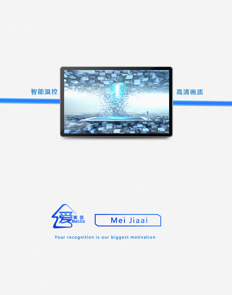 3.2 自主研發智能溫控系統控制盒,可以根據廣告機內部溫度,智能調節整機內部空氣和外部空氣進行時時循環,所有外界風先進入過濾網,把風分成屏前/后兩風道循環。