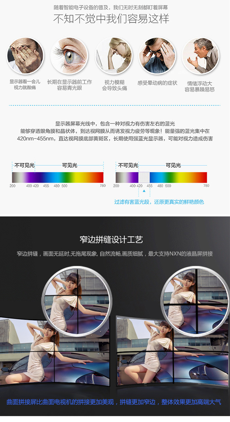 【美佳愛-4k液晶拼接屏生產廠家電話400-997-9971】高清曲面液晶拼接屏產品通過ISO9001_3C_節(jié)能認證等30多項認證,主營LG/京東方/三星大屏幕電視墻,其尺寸有32寸40寸43寸46寸49寸55寸65寸75寸液晶拼接單元,也有曲面,弧形,柔性,無縫LED顯示屏,顯示器,超窄邊高清監(jiān)視器,提供企業(yè)展廳展示,KTV,酒吧,會議室,視頻監(jiān)控系統(tǒng)解決方案設計-報價-安裝施工-售后超窄邊維修等服務